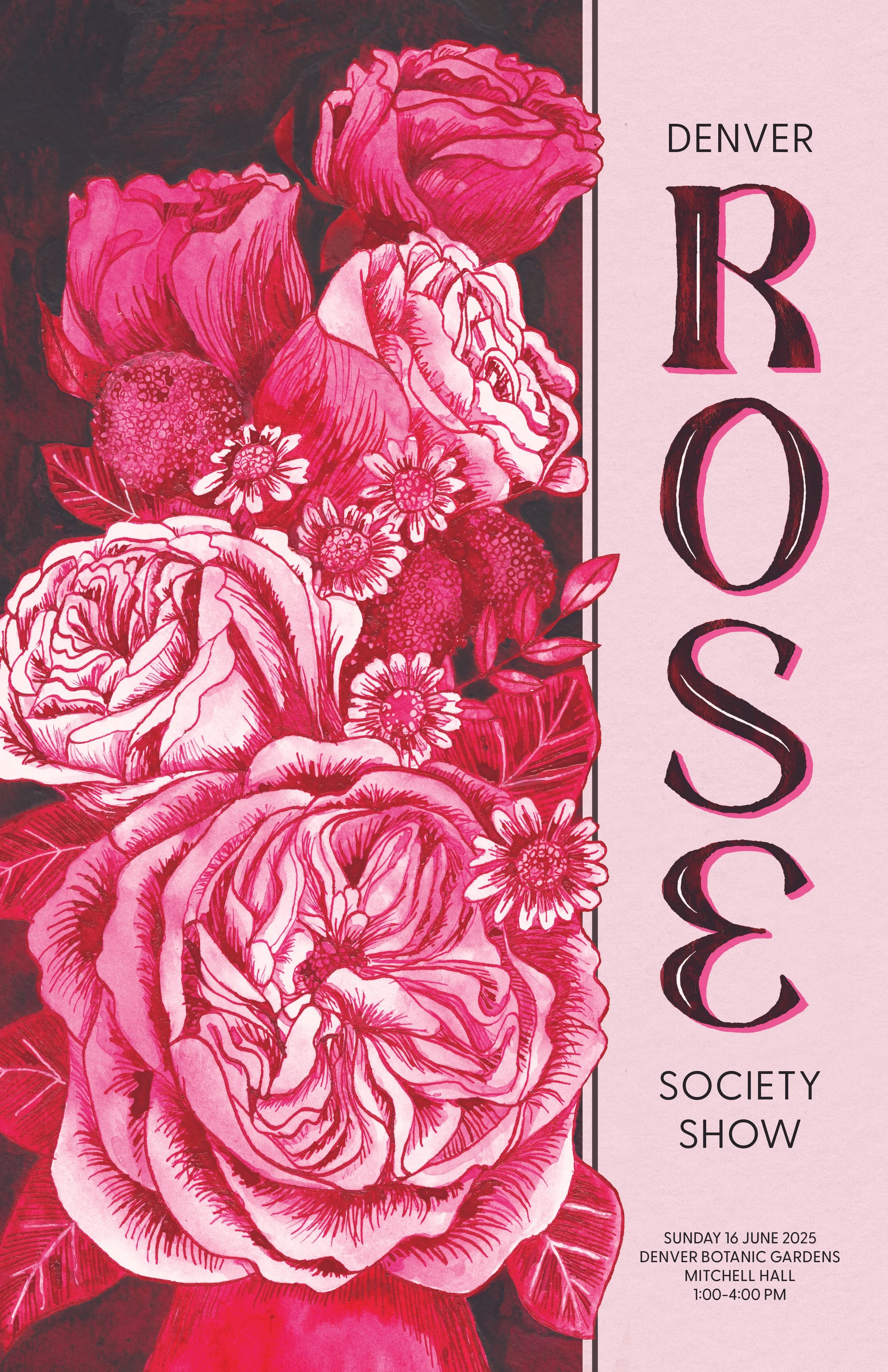 Their annual competitive rose show takes place at the Denver Botanic Gardens. This poster was created as a marketing item to promote the show and raise awareness of the society and annual rose show at the botanical gardens. The poster was hand painted using a magenta ink wash with line work for the florals and typography.
